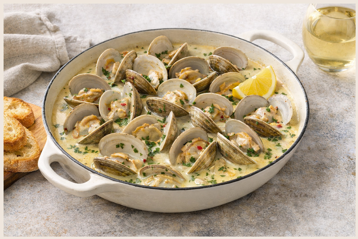 Clams with Creamy White Wine Sauce